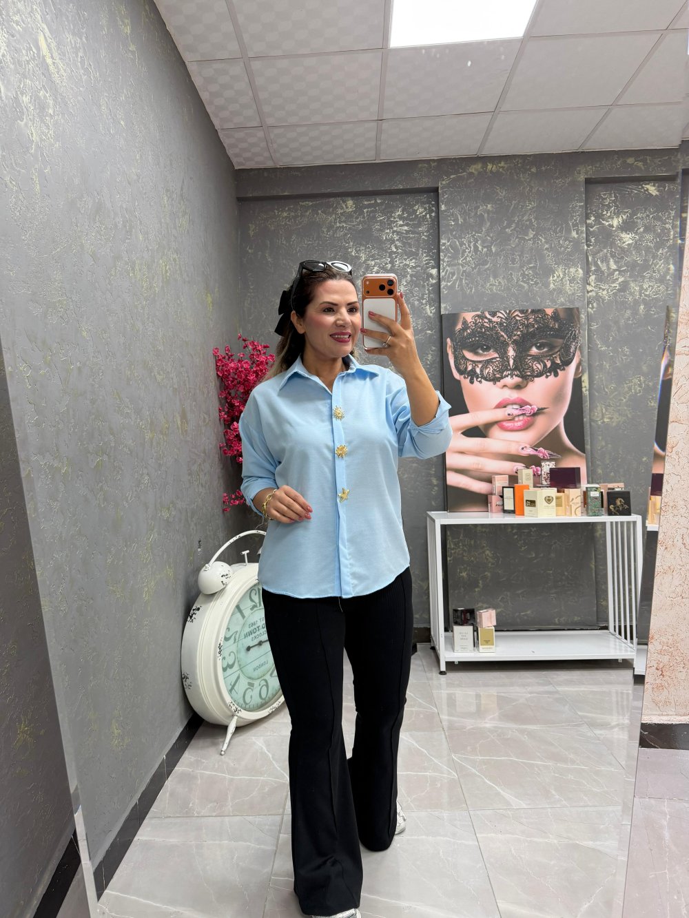 3 DÜĞME DETAYLI GÖMLEK Mavi