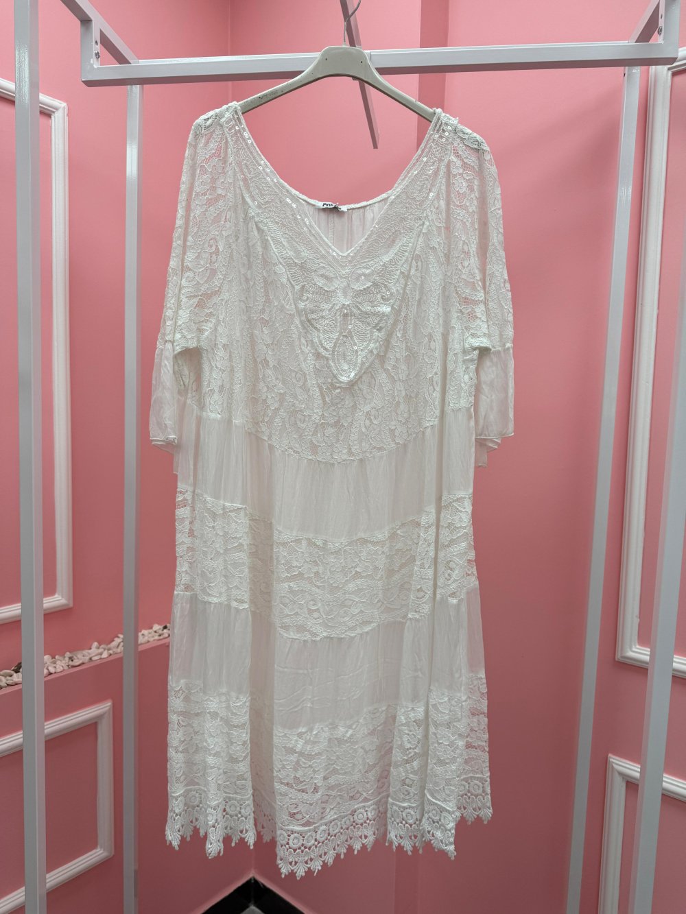 BAYAN DANTEL DETAYLI ELBİSE Beyaz