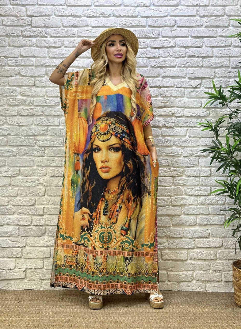 BAYAN ETNİK DESEN ELBİSE Sarı