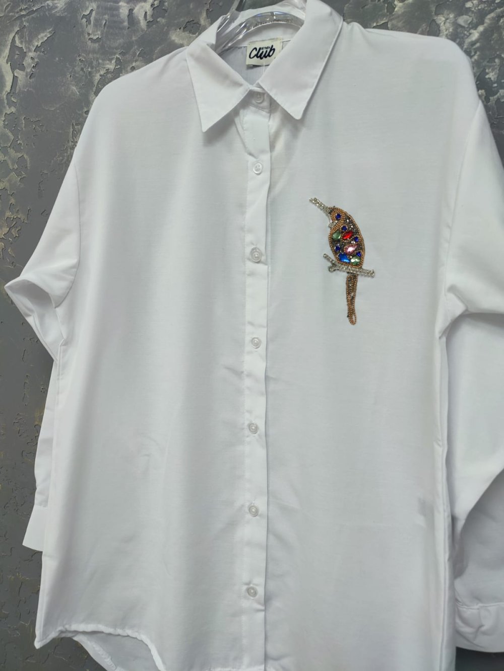 BAYAN KUŞ DETAYLI GÖMLEK Beyaz