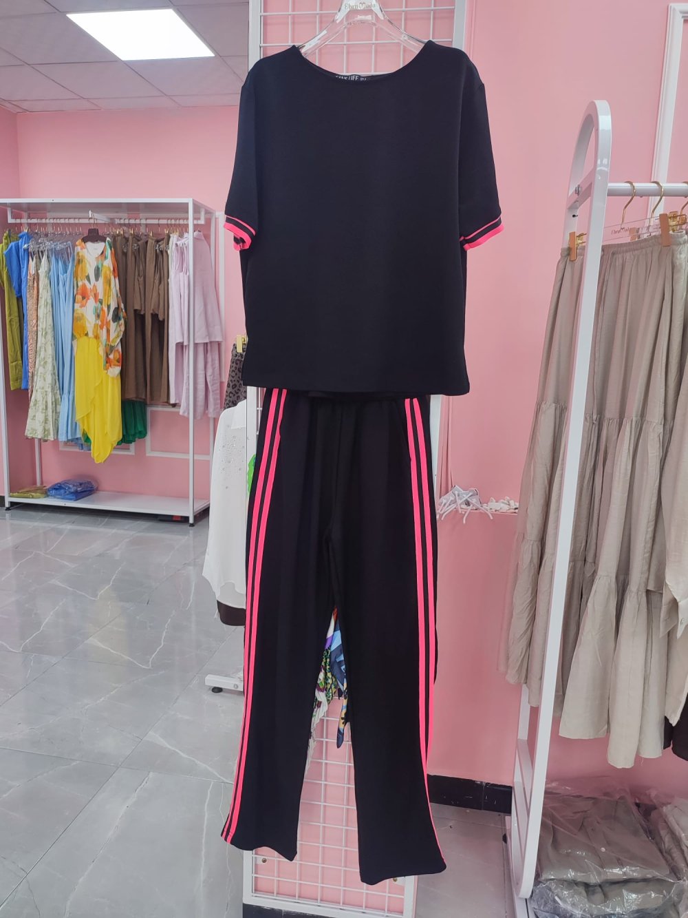 BAYAN PEMBE ŞERİT DETAY TAKIM Siyah
