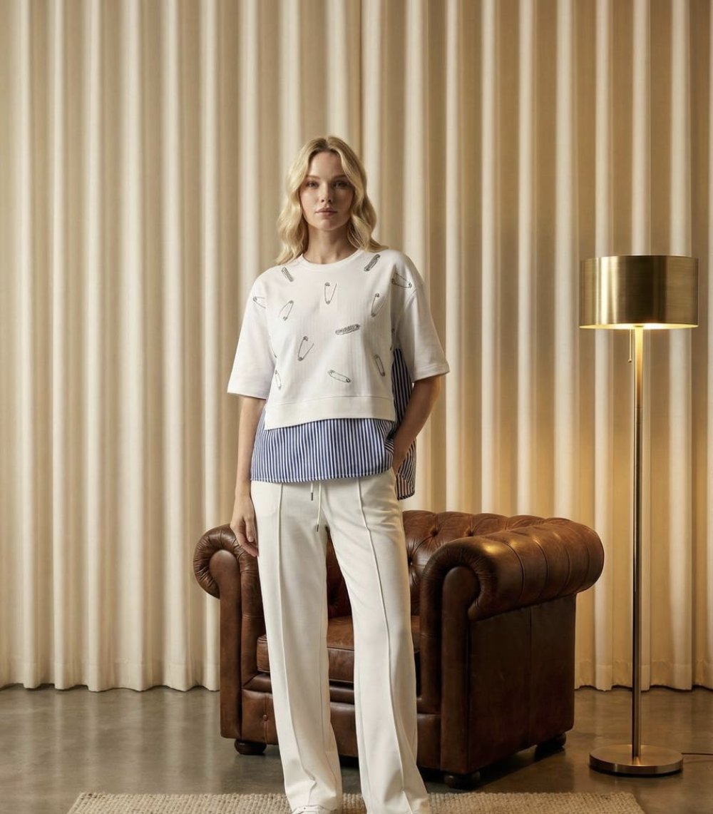 İĞNE DETAYLI İKİLİ TAKIM Beyaz