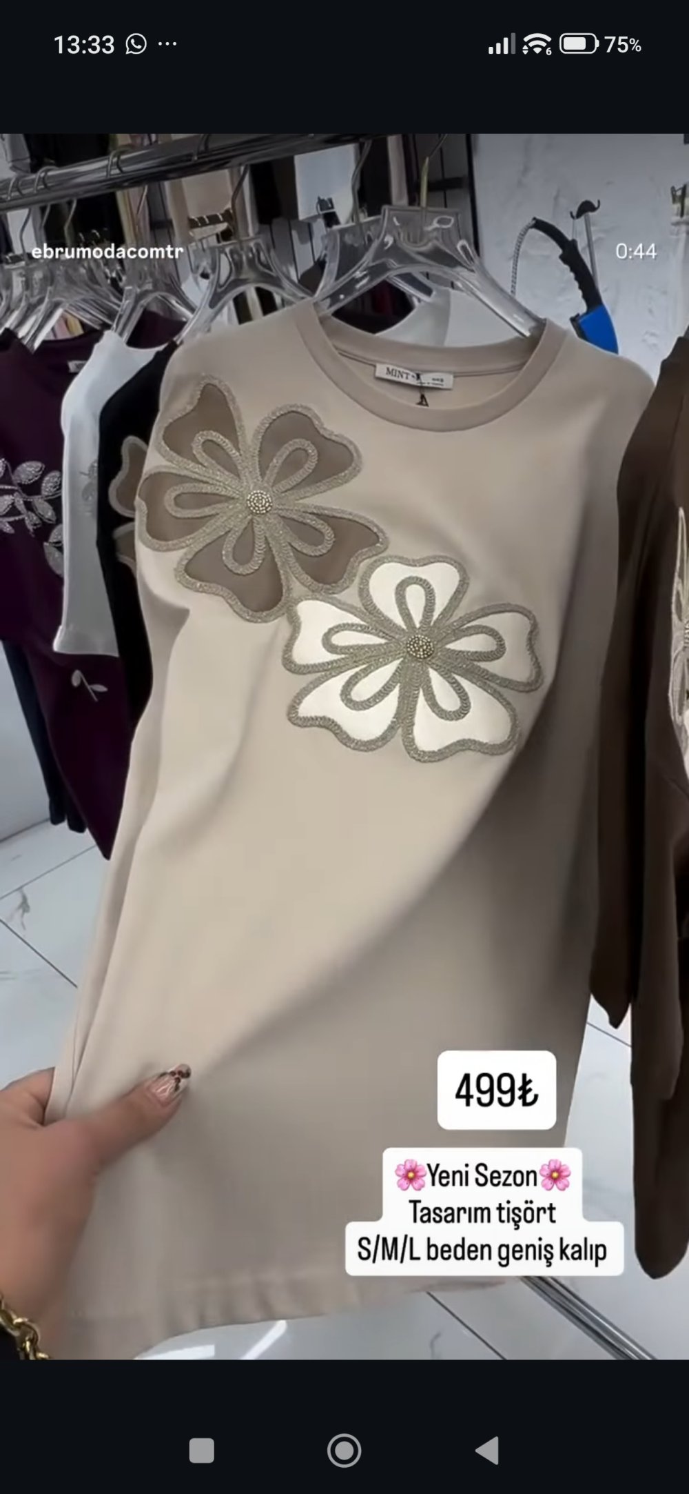 İKİ BÜYÜK PAPATYALI TİŞÖRT Bej