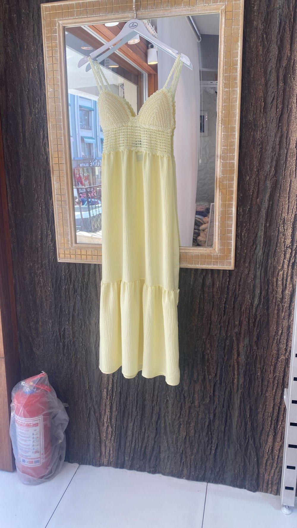 İP ASKILI BÜSTİYER GÖRÜNÜMLÜ ELBİSE Sarı
