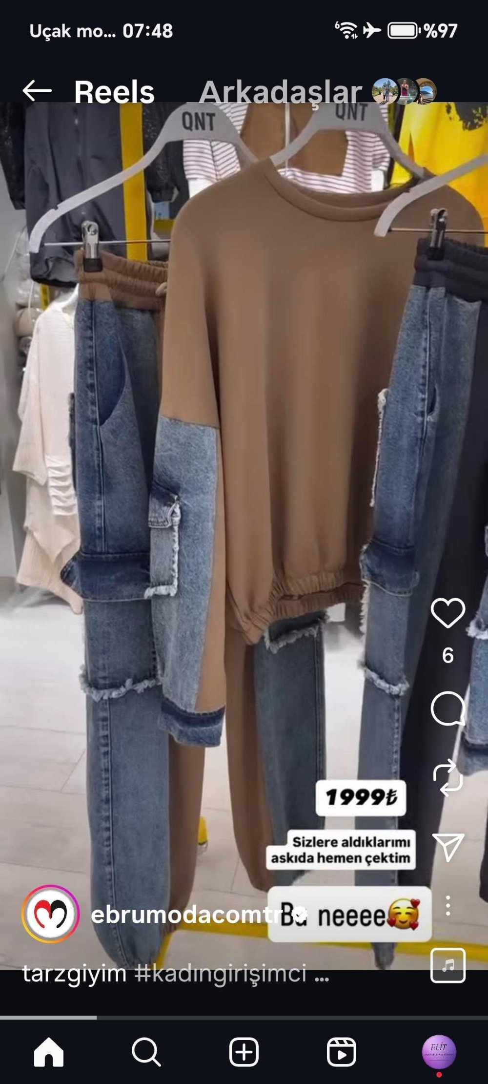 JEAN DETAY İKİLİ TASARIM TAKIM Sütlü Kahve