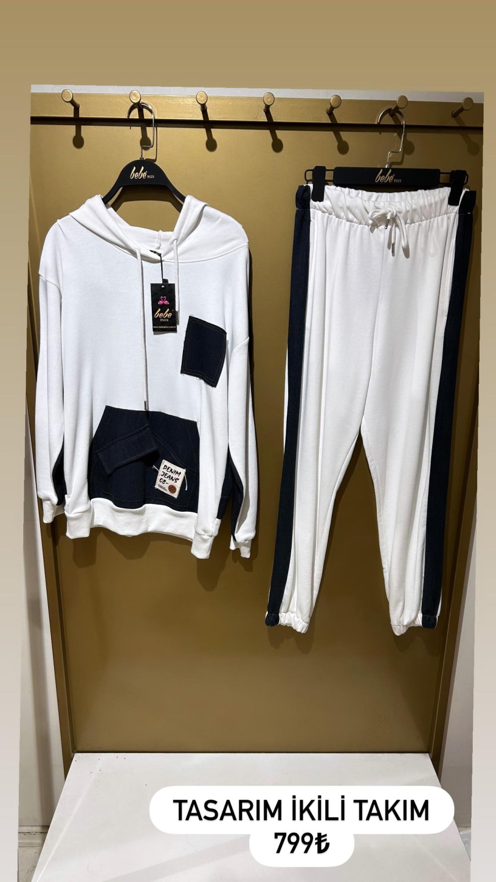 JEAN DETAY TASARIM İKİLİ TAKIM Beyaz