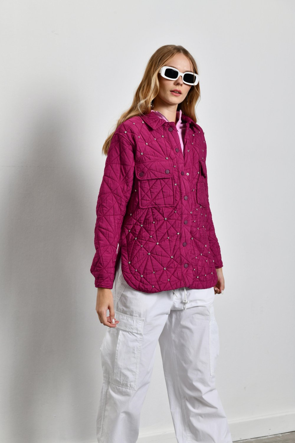 KAPİTONE TAŞ DETAYLI CEKET Fuşya