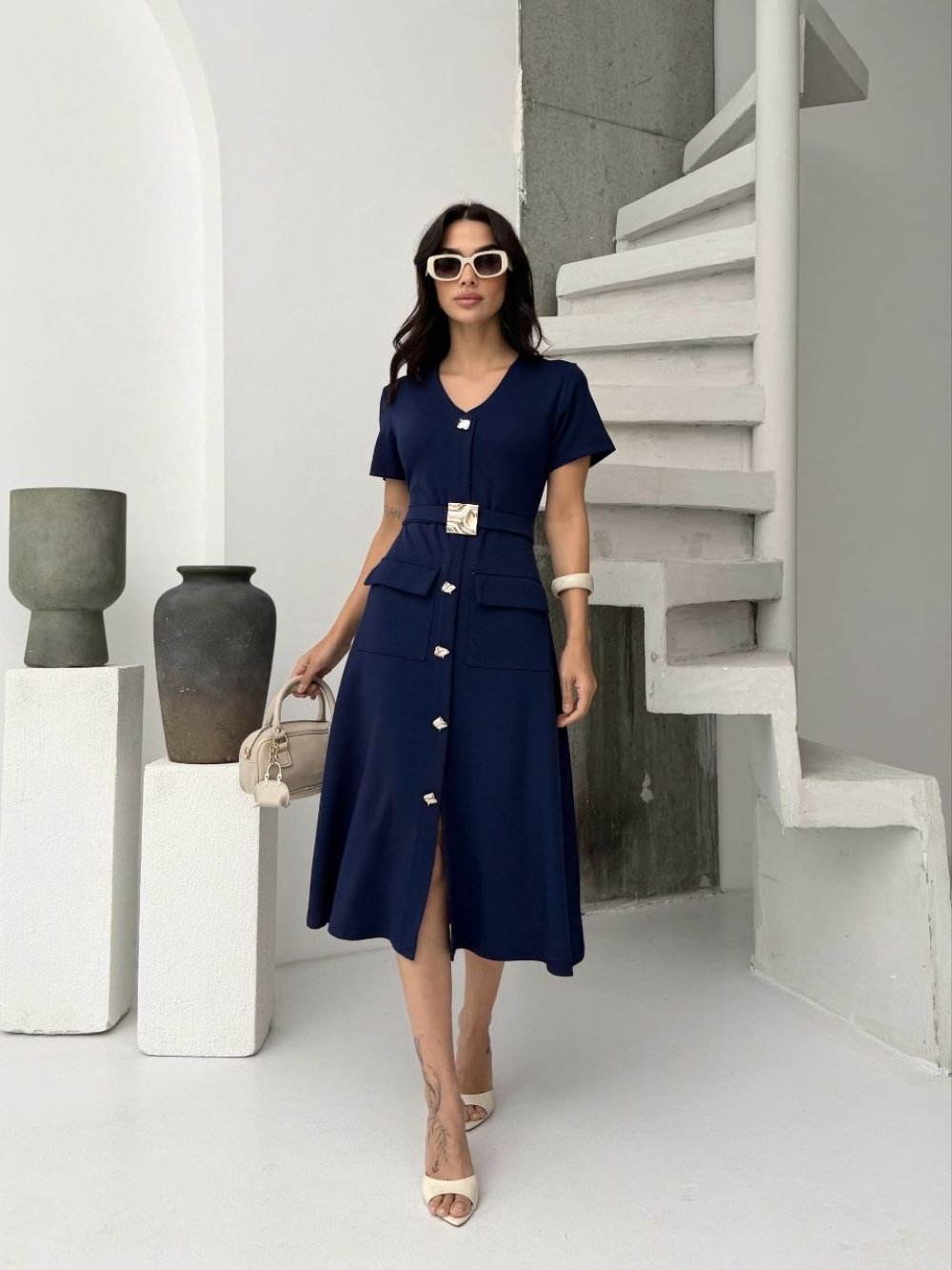 KEMER DETAY ELBİSE Lacivert