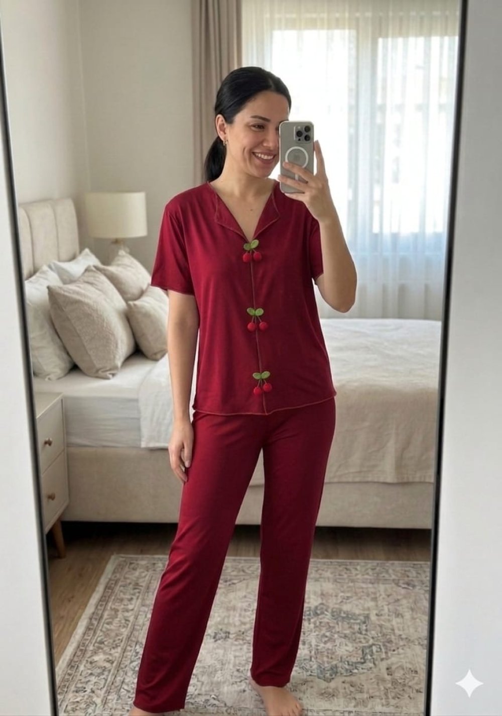 KİRAZ DETAY PİJAMA TAKIMI Kırmızı