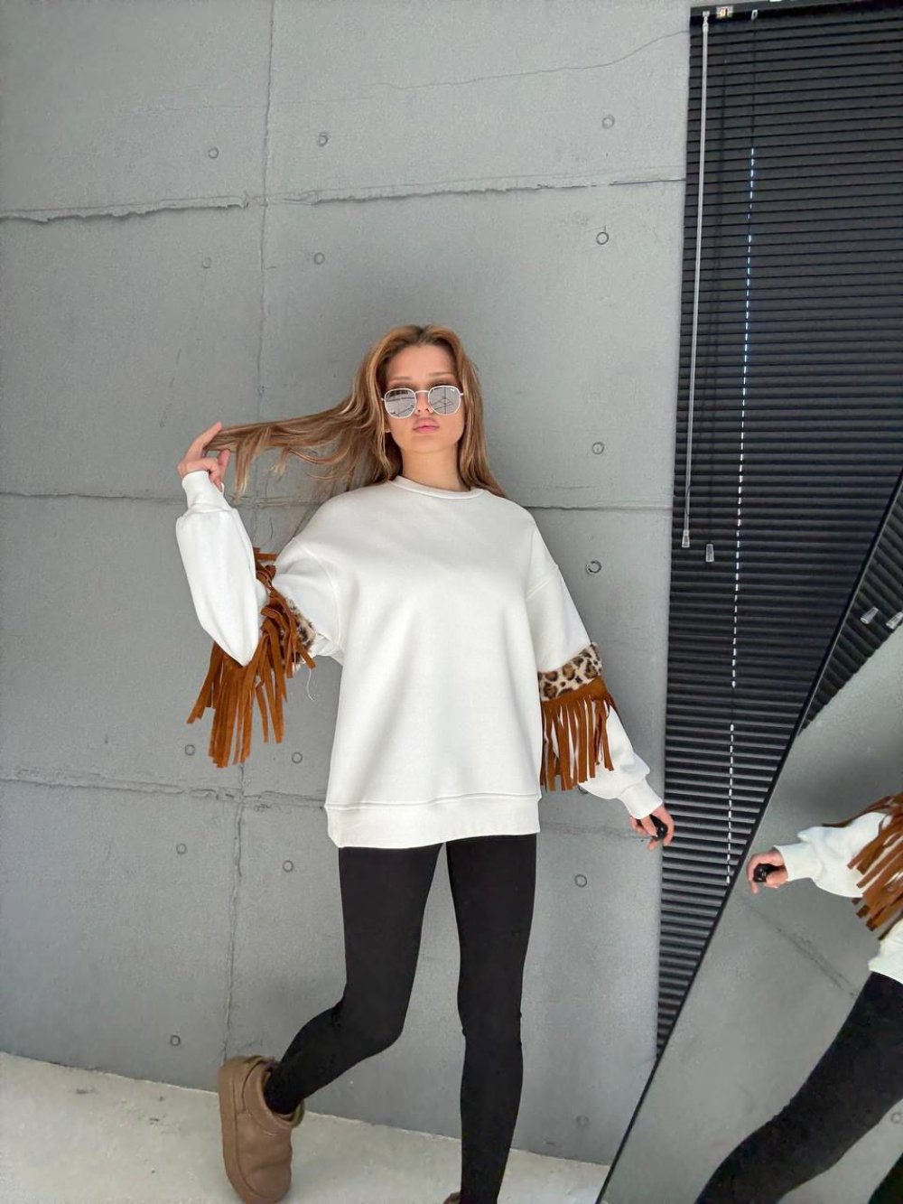 KOLLAR PÜSKÜL DETAYLI ŞARDONLU SWEAT Beyaz