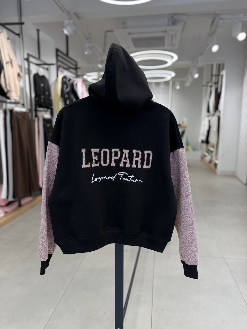 LEOPARD KAPŞONLU ŞARDONLU SWEAT Siyah