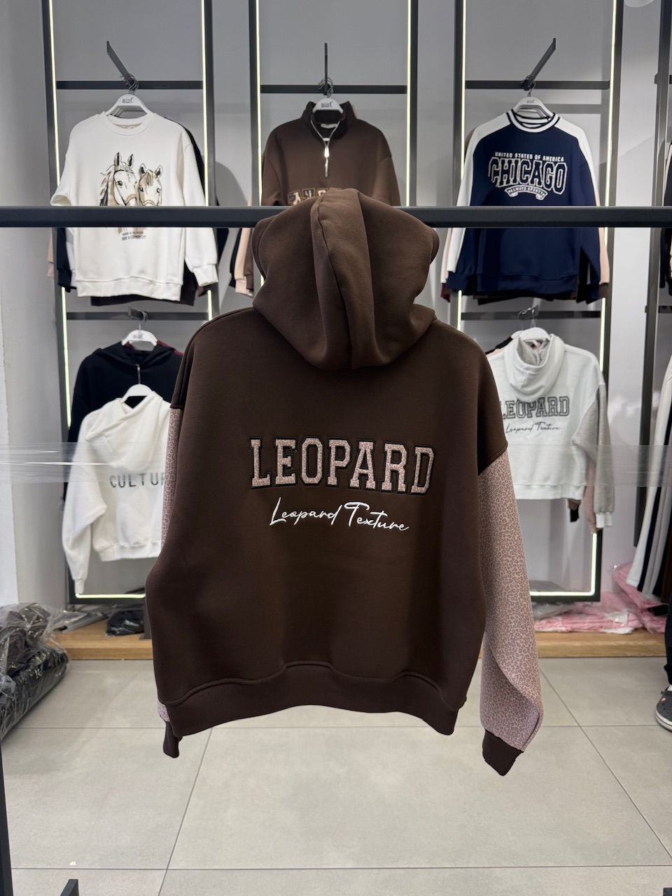 LEOPARD TEXTURE KAPŞONLU ŞARDONLU SWEAT Acı Kahve