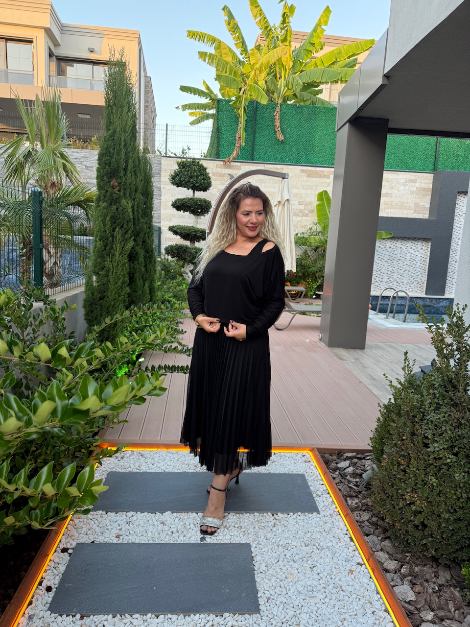PİLİSELİ İKİLİ ELBİSE Siyah