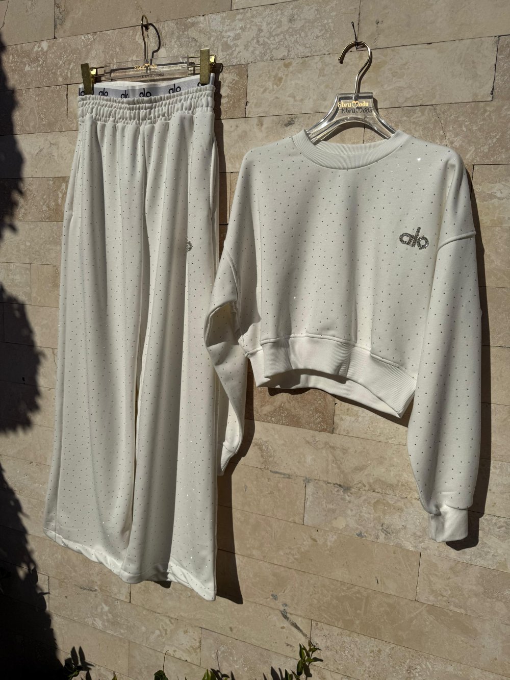 ŞARDONLU LO CROP İKİLİ TAKIM Beyaz