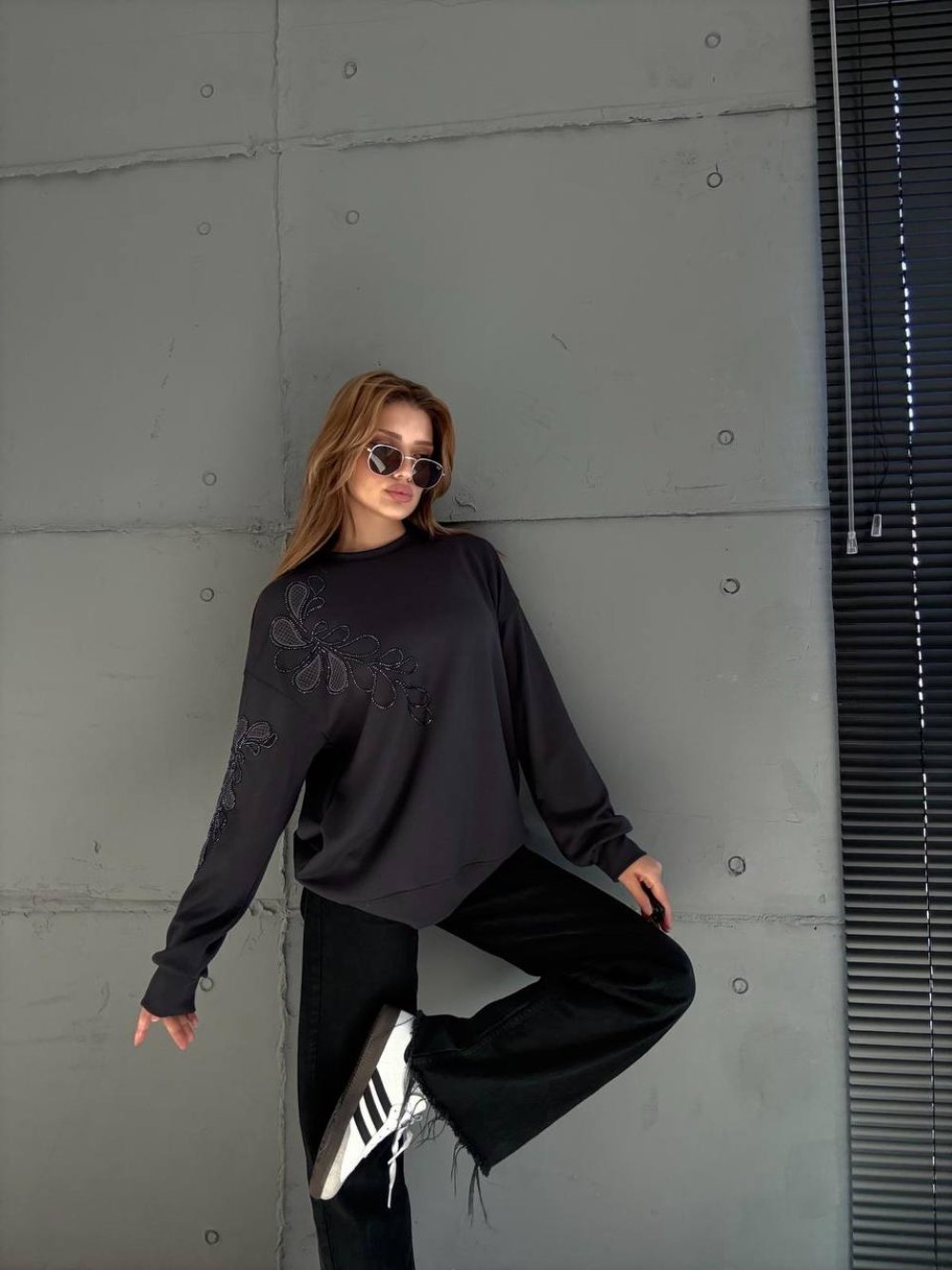 SARMAŞIK ÇİÇEK DETAY SWEAT Antrasit
