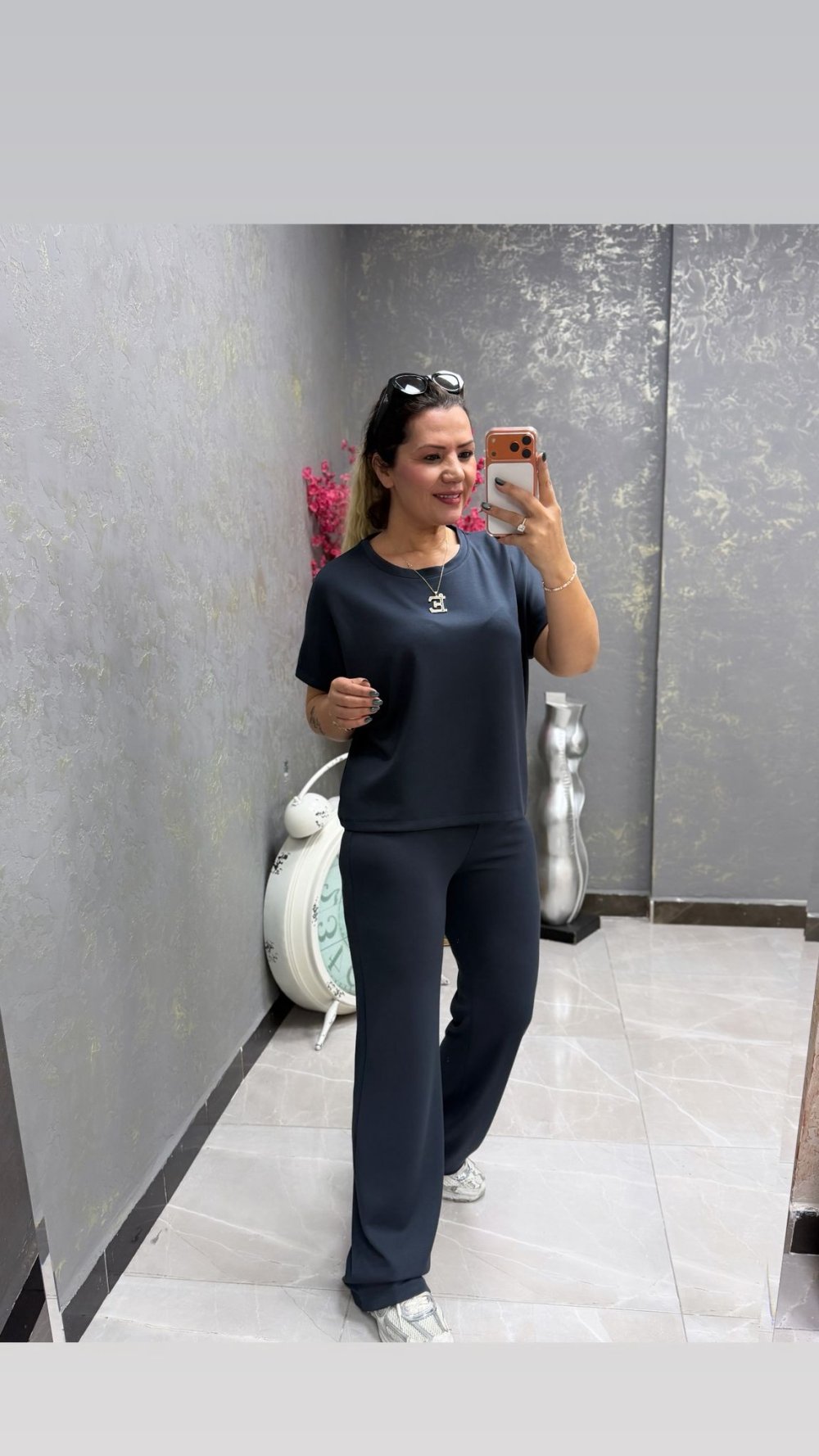YUVARLAK YAKA MODAL KUMAŞ İKİLİ TAKIM Antrasit